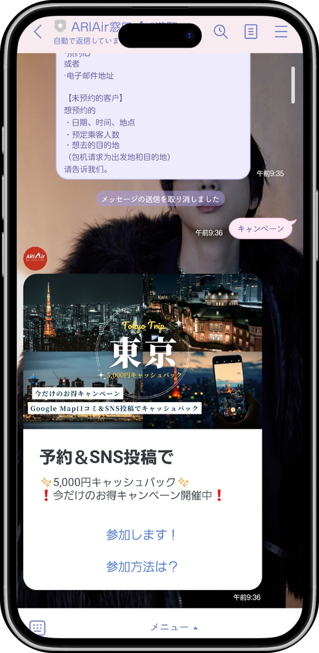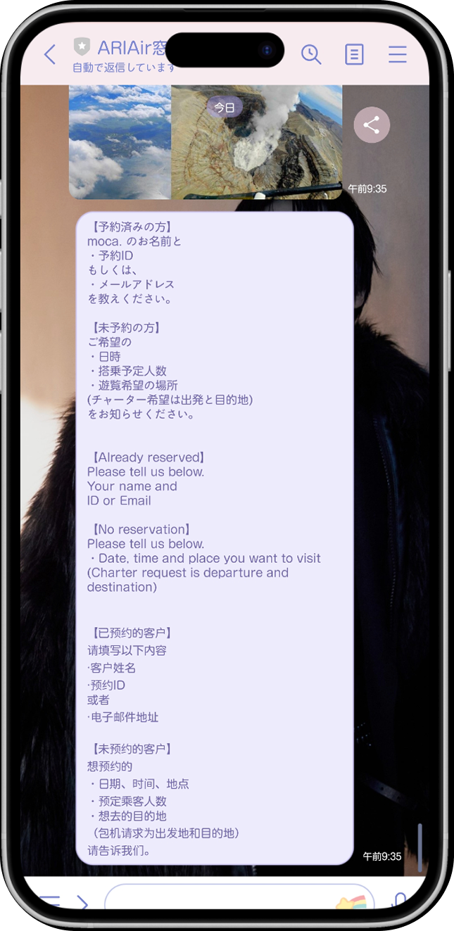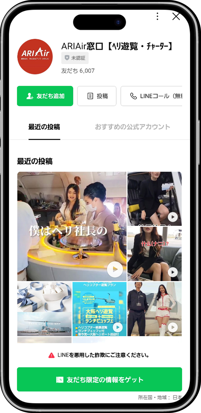 ARIAirかカスタマサポート専用の公式LINE(遊覧・移動)