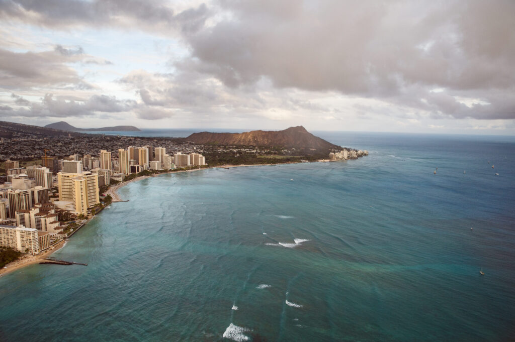 フライトはホノルルを拠点に出発し、ワイキキビーチやダイヤモンドヘッドなど、オアフ島を代表する美しい景観を上空からご覧いただけます。海岸線のコントラストや島のダイナミックな地形を、ヘリコプターならではの視点で体感できます。